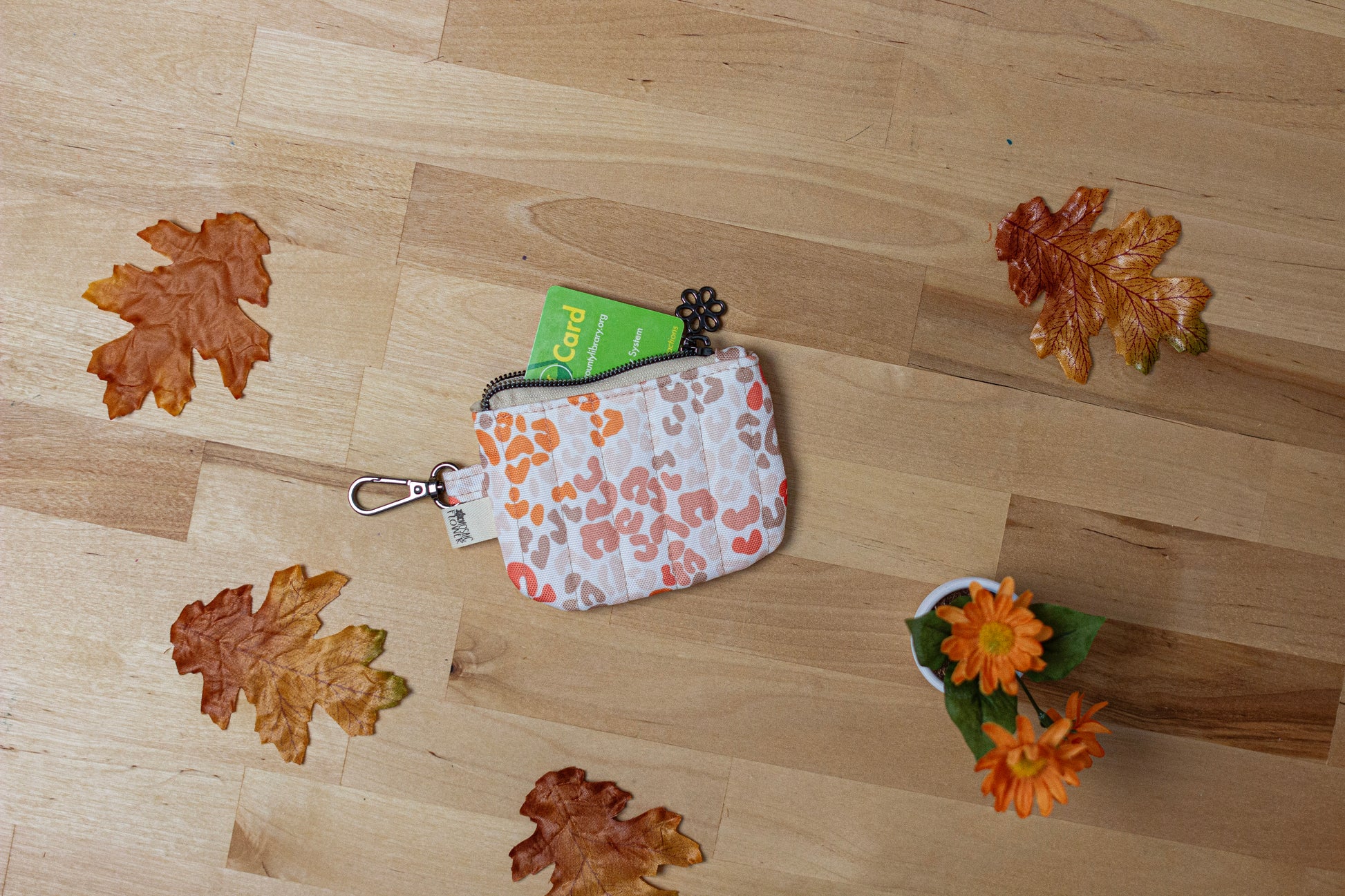 Perfect for your cards or change to clip to your bag, keys or wristlet fob. Attaches with a swivel clasp.