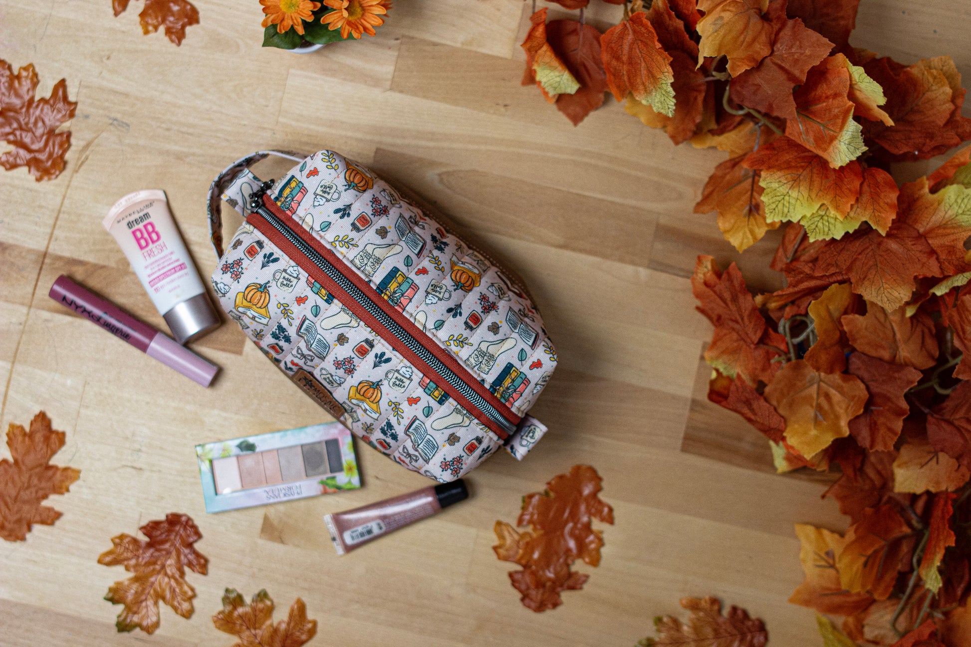 Makeup Bag Medium: Quilted Canvas/Vinyl Cozy Fall Books